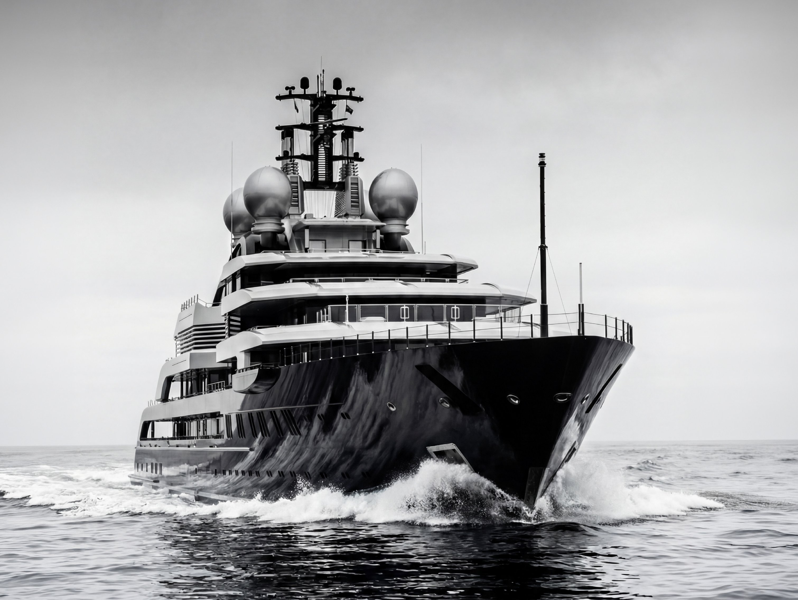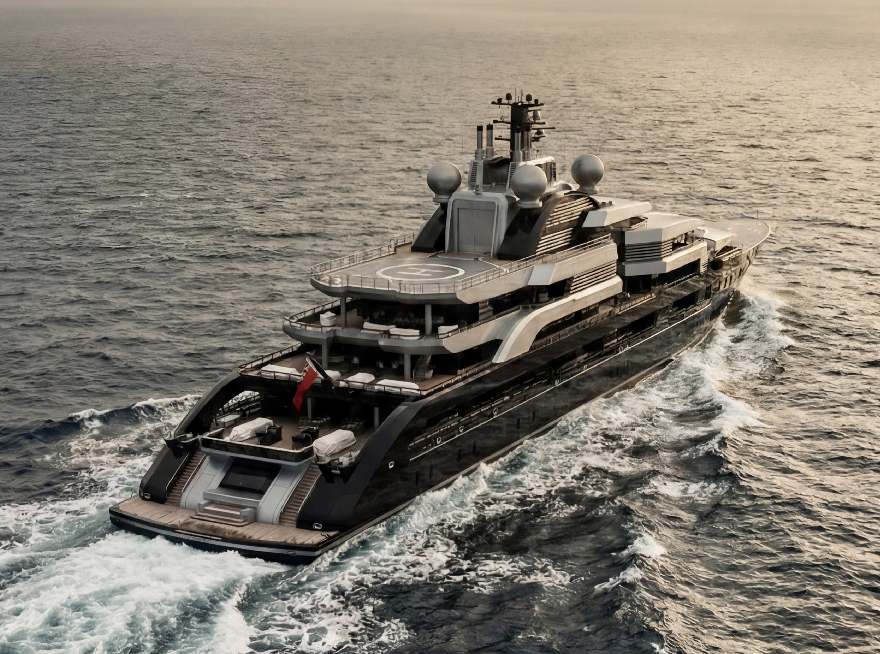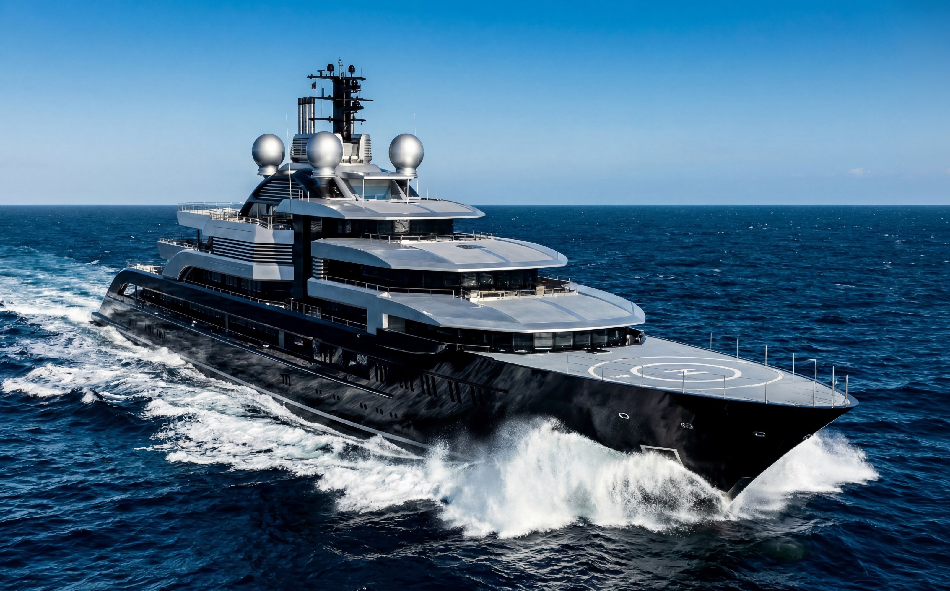 His design philosophy for CRESCENT emphasized power and presence: the aggressive raked bow, stepped-aft profile and that signature jet-black hull and silver superstructure make her instantly recognizable (if you actually had the chance to one day spot her).