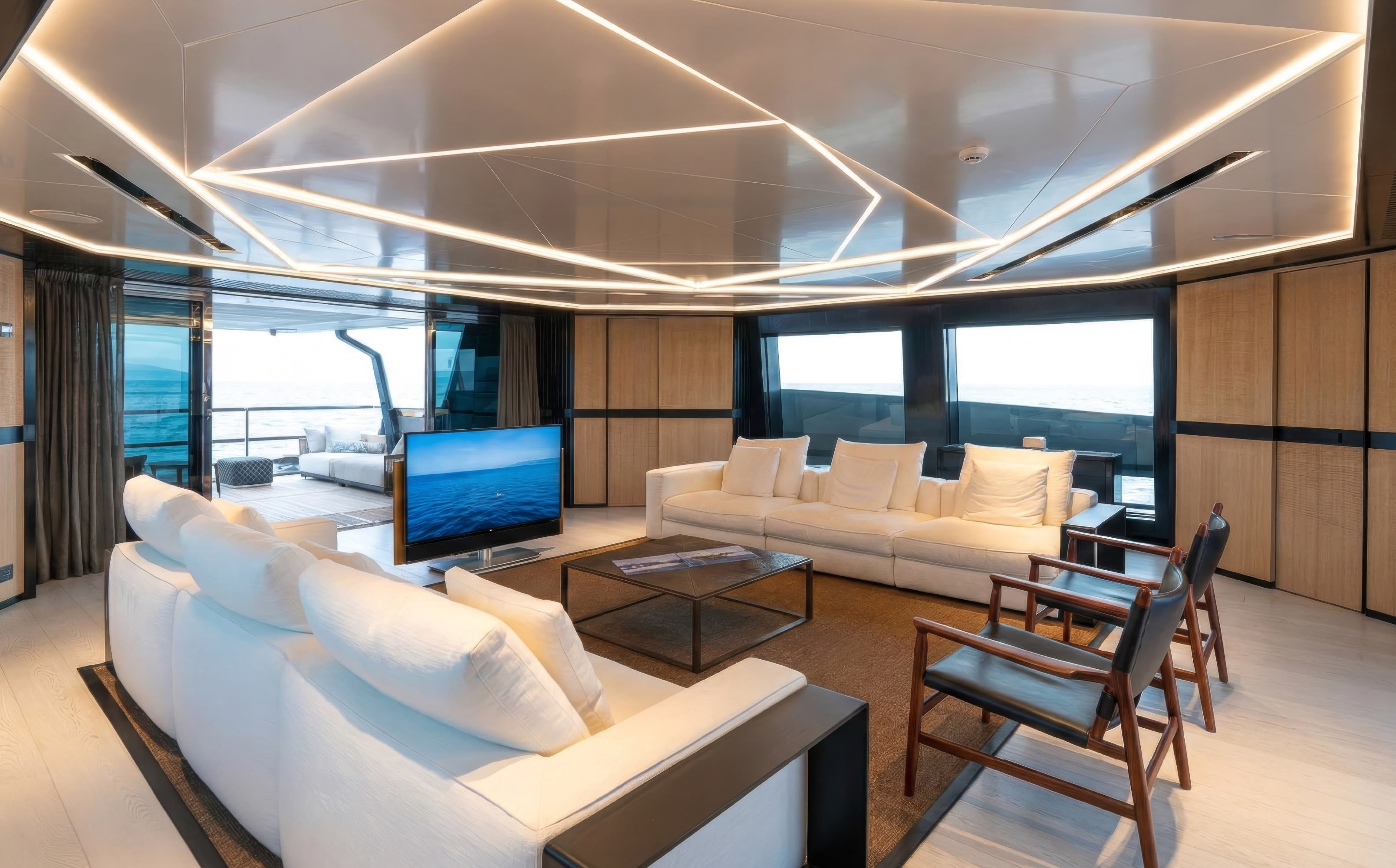 ”K+” was marketed with a ‘disco’ lifestyle in mind. During its showcase at the 2023 Monaco Yacht Show, interior details revealed a dedicated disco area complete with a bar and DJ booth. To complement the party vibe, the yacht is equipped with a professional-grade light and sound system and a large cinema setup, making it one of the few vessels of its size that prioritize ‘nightlife’ over traditional maritime formality.