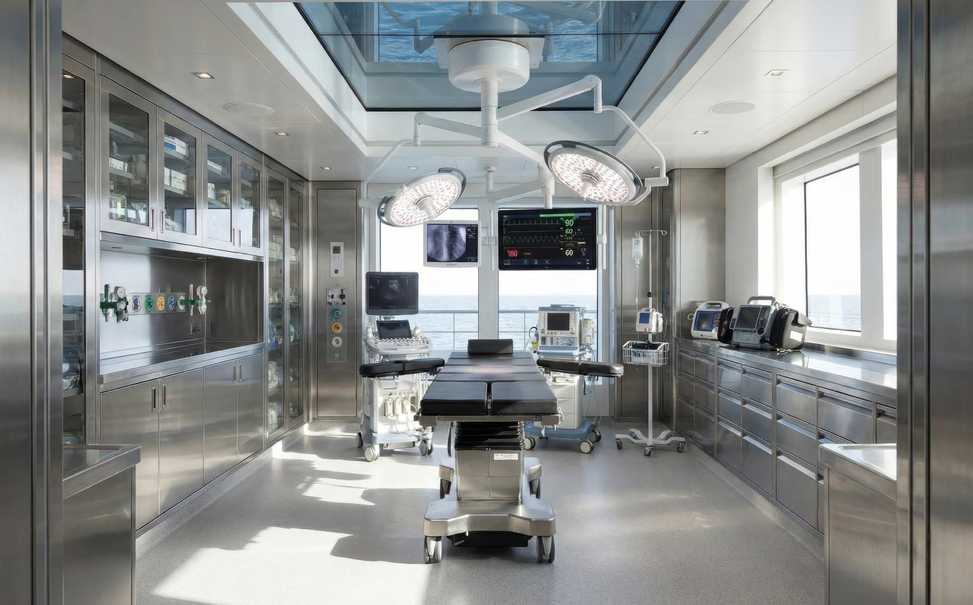 HOSPITAL: A fully functioning hospital suite ensures medical safety during long-range expeditions far from shore-based support.