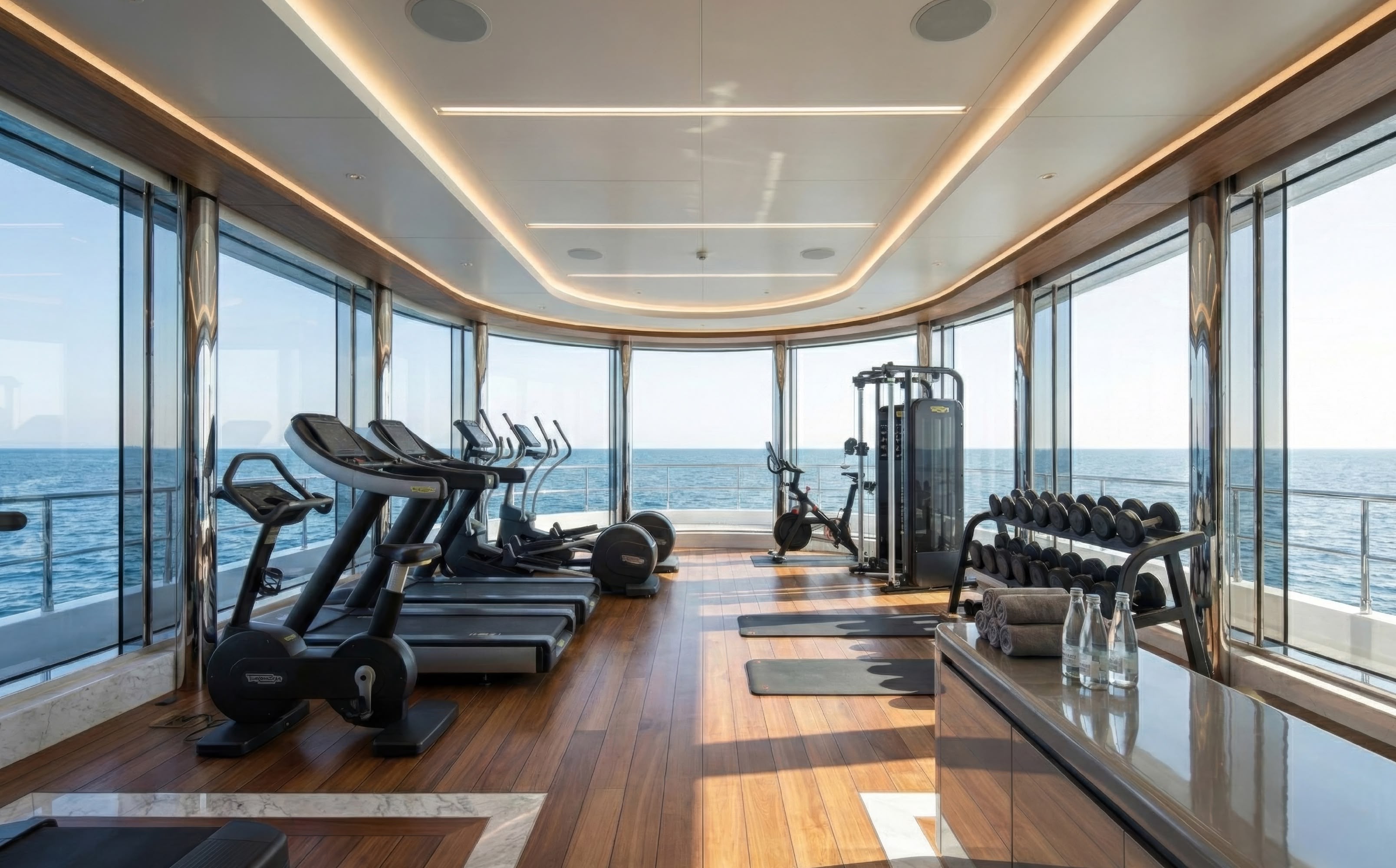 GYM: A professional-grade gym is available, with equipment specified to maintain fitness during weeks at sea.