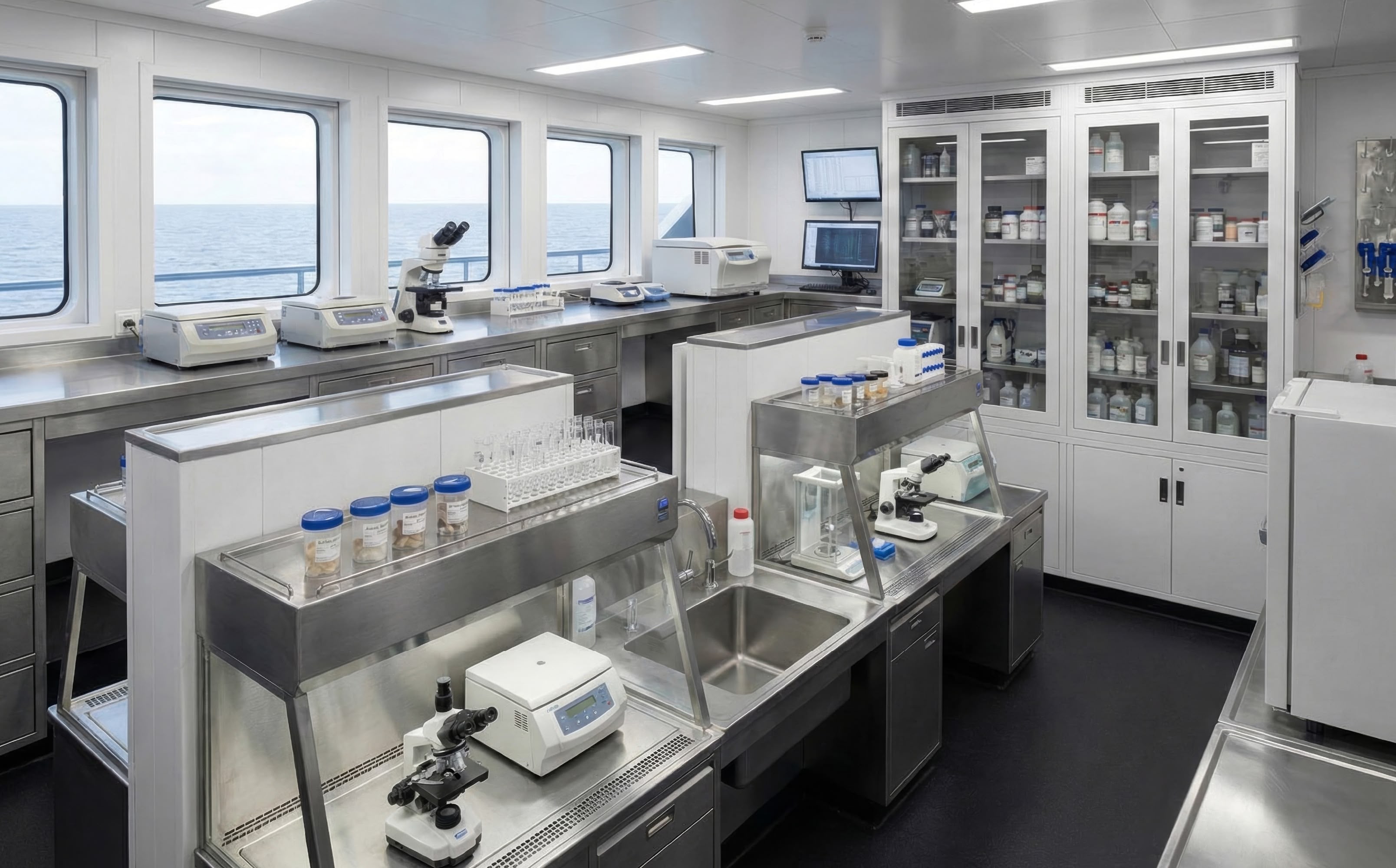LABS: Wet and dry labs allow for the immediate processing of biological samples retrieved from the ocean depths.