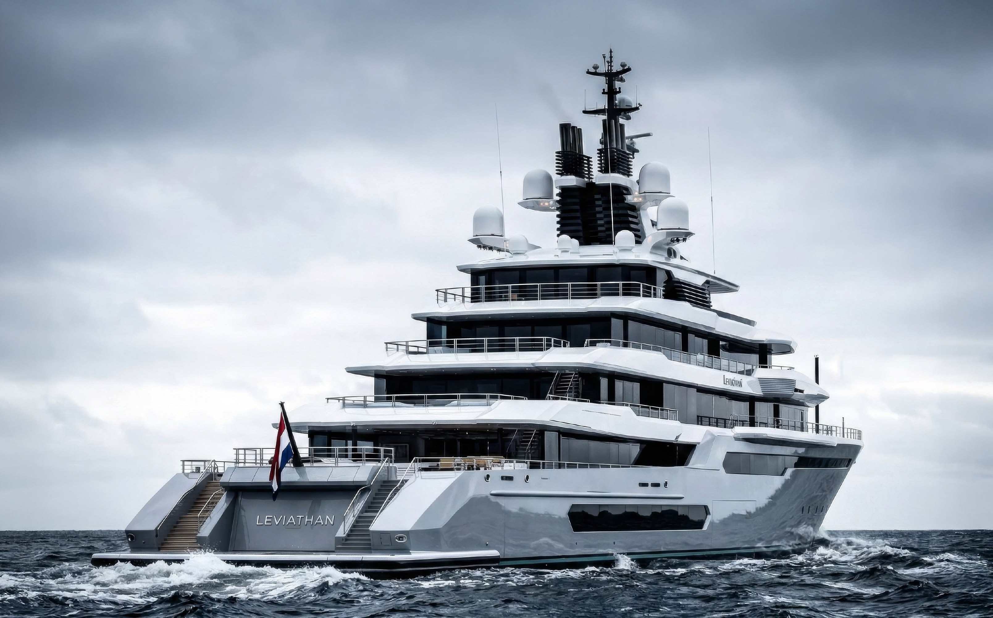Unlike traditional yachts that use diesel engines connected to fixed propeller shafts, ”Leviathan” utilizes a Diesel-Electric architecture powering two ABB DO980P Azipod units For information, an Azipod is an electric motor housed in a submerged pod outside the ship's hull. The pod can rotate 360 degrees, eliminating the need for rudders and stern thrusters.