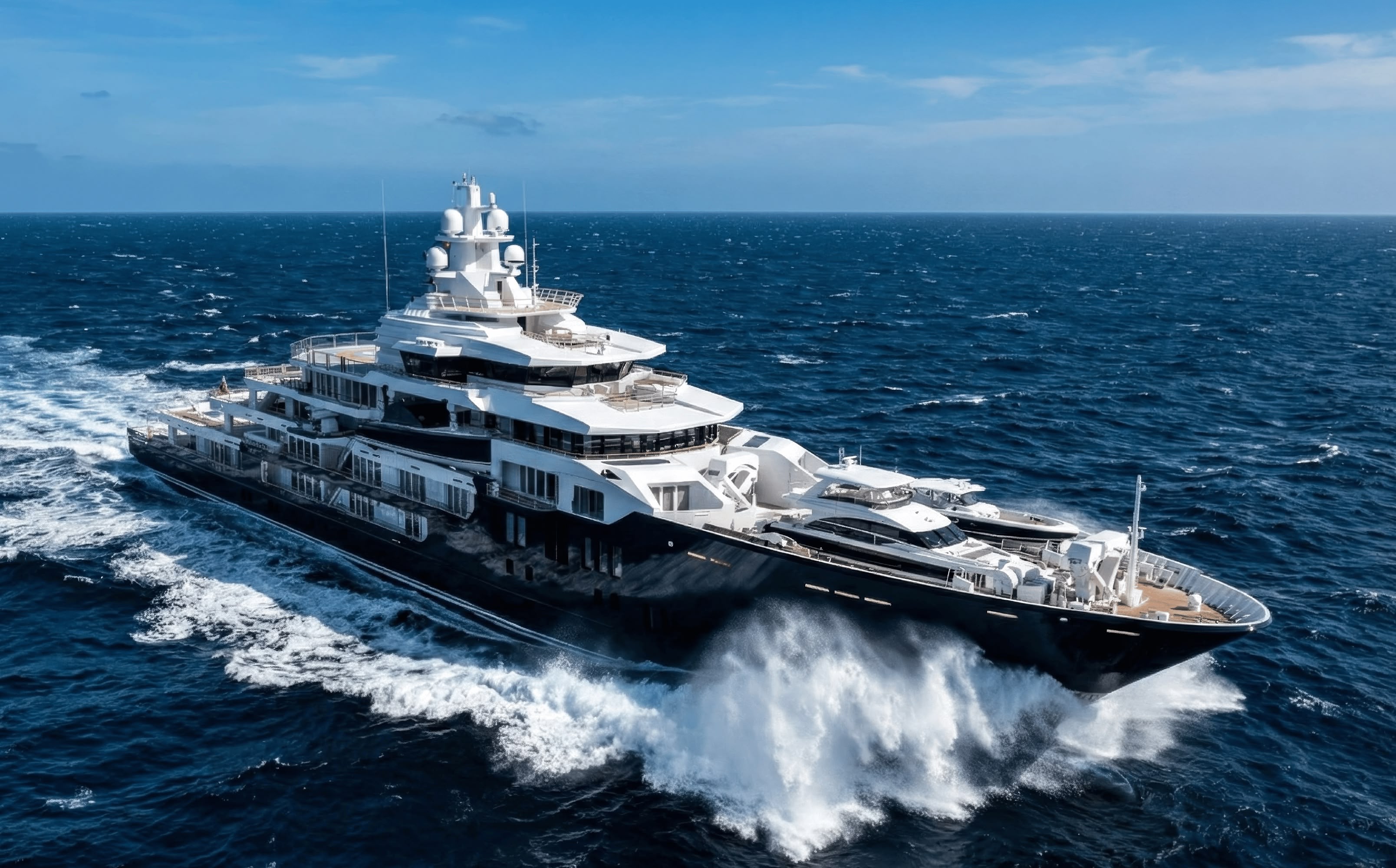 The most distinctive feature of ”Multiverse” is its ability to carry a fleet of tenders that rivals the navies of small nations. The centerpiece of this fleet is a 21-meter Princess 68 motor yacht.