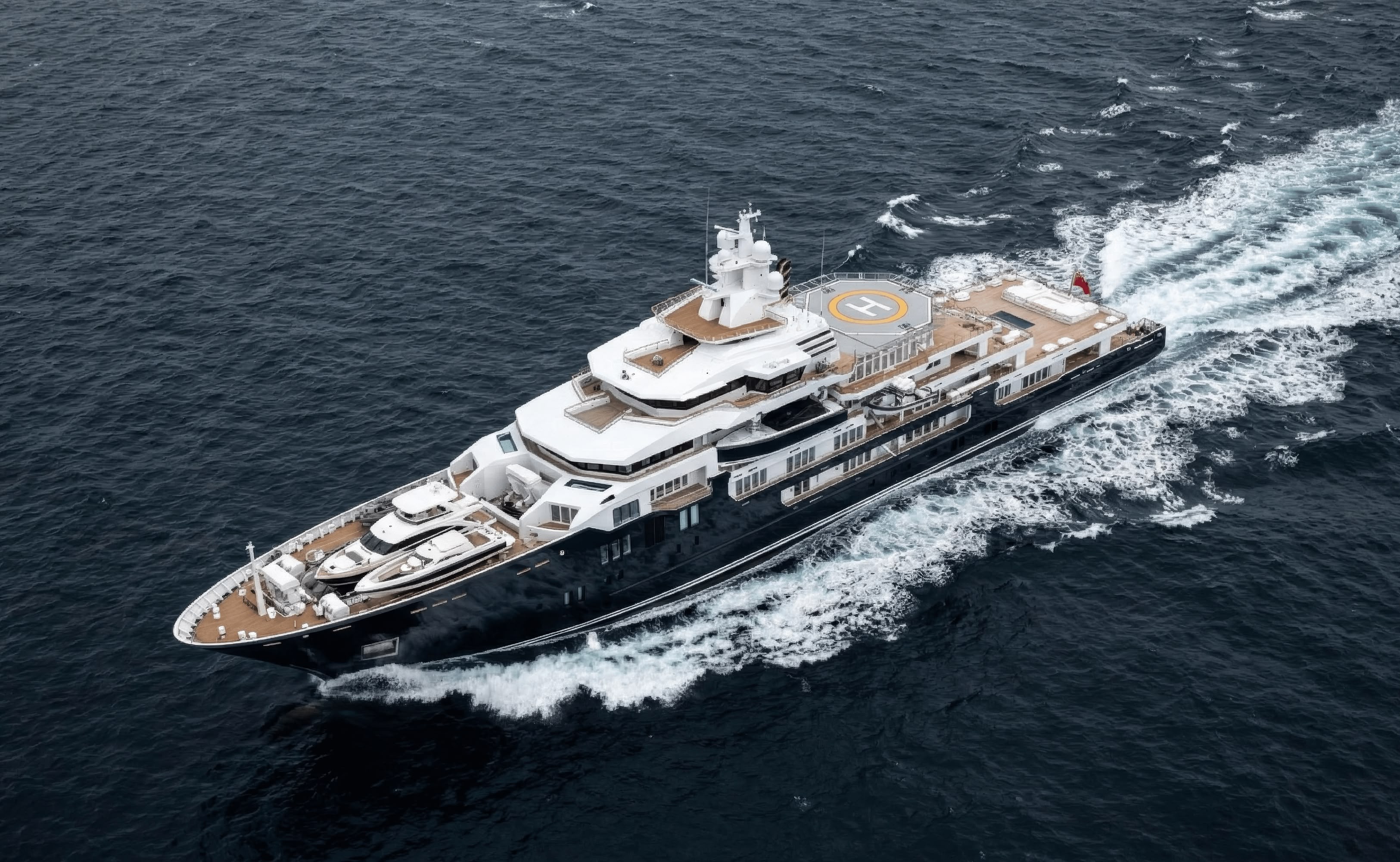 • The Launch Mechanism: The tender is stowed on the foredeck (the ‘well deck’). It is deployed using two massive, custom-built commercial cranes capable of lifting its 45-ton weight over the high bulwarks.
