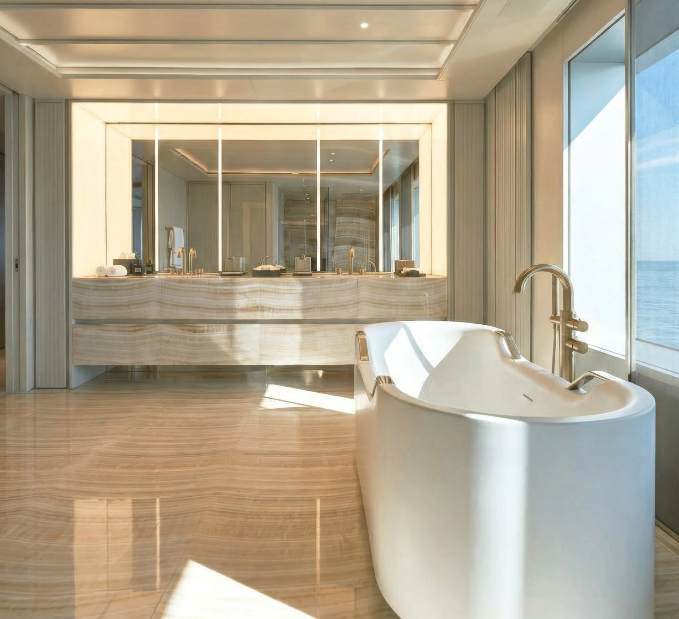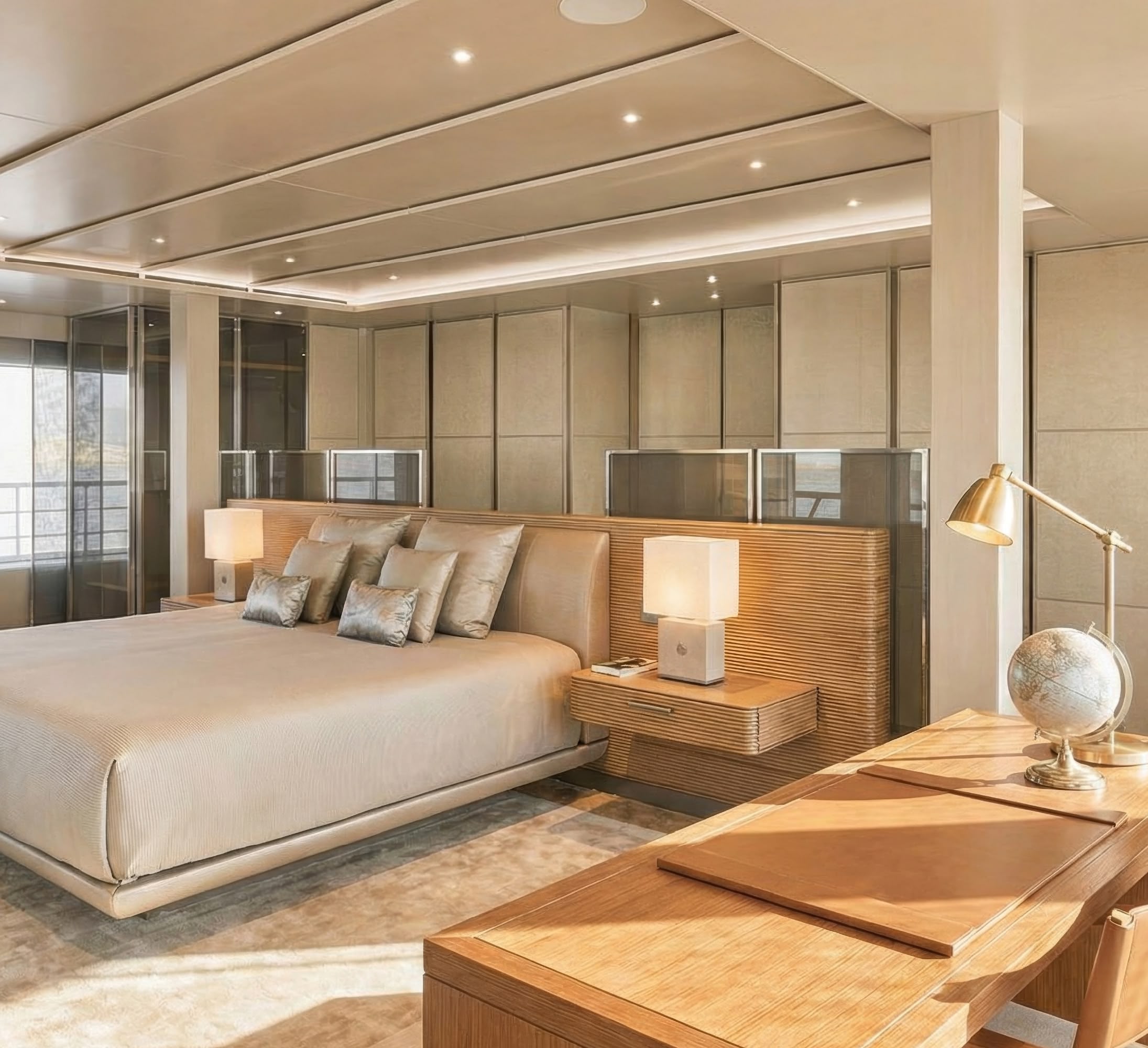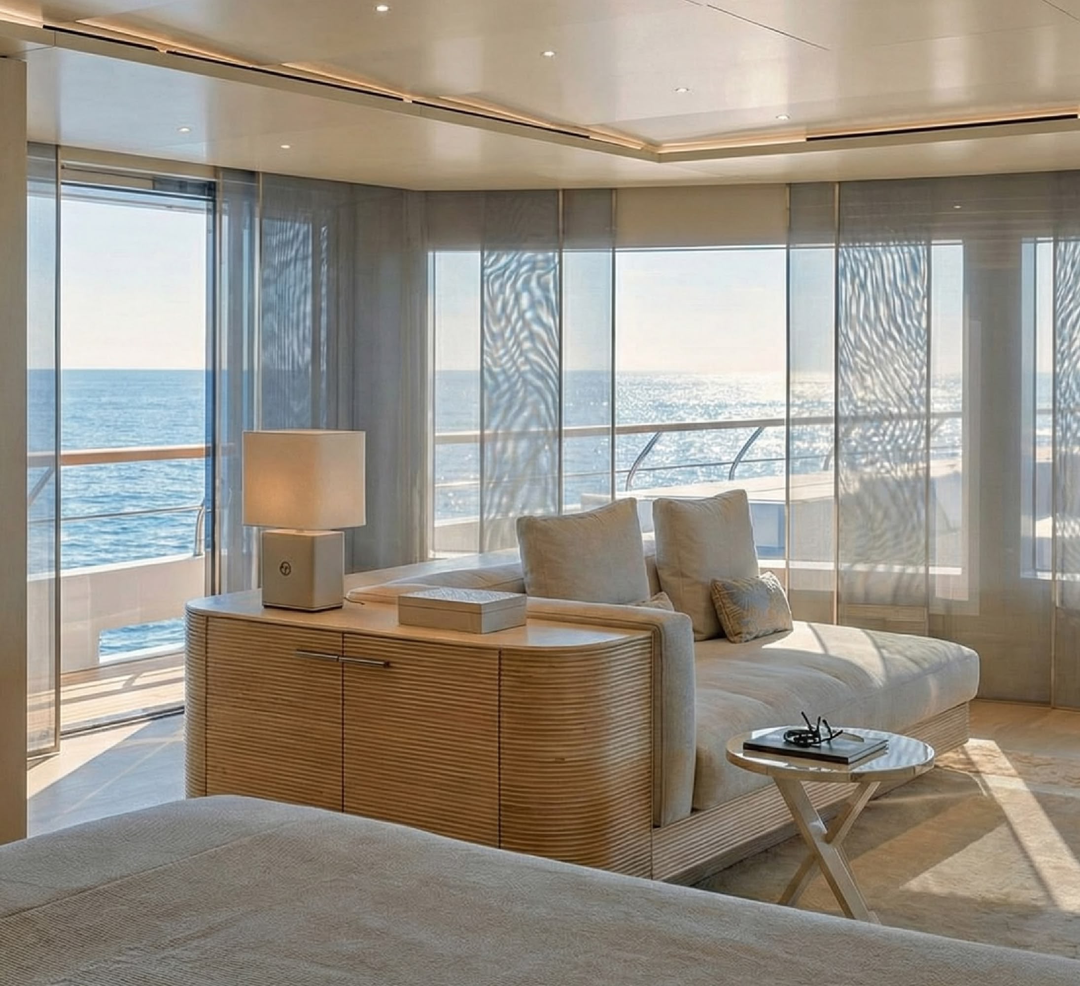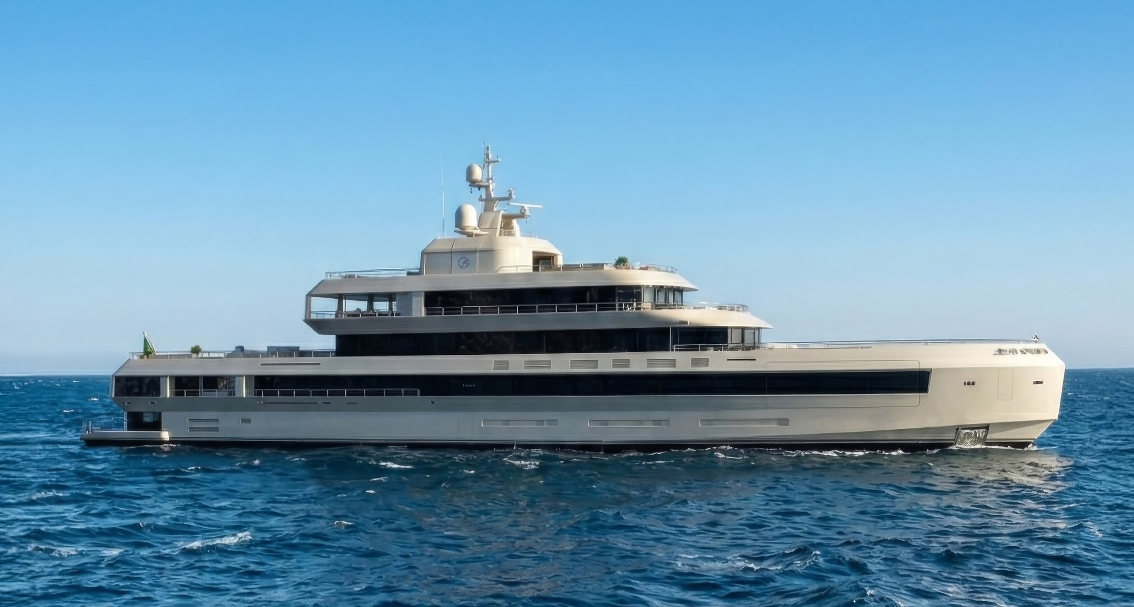 The result is a yacht that changes color with the sun, appearing champagne in the morning light and a deep, burnished gold at sunset. This ‘skin’ is integral to the yacht's identity, separating it from the fleet of white boats that dominate the Mediterranean. (+)